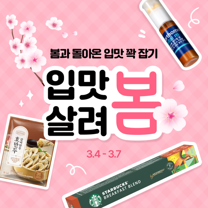 봄맞이 장보기 계획이 있다면 간편하게 카카오 쇼핑을 이용해보자. 카카오 톡딜에서는 오는 7일까지 봄에 어울리는 식품을 최대 90% 할인된 특가로 만나볼 수 있는 '입맛살려봄' 프로모션을 진행한다. 봄 시즌을 맞아 다양한 가공식품 및 건강식품을 한데 모아 특별 할인가로 제공한다.
