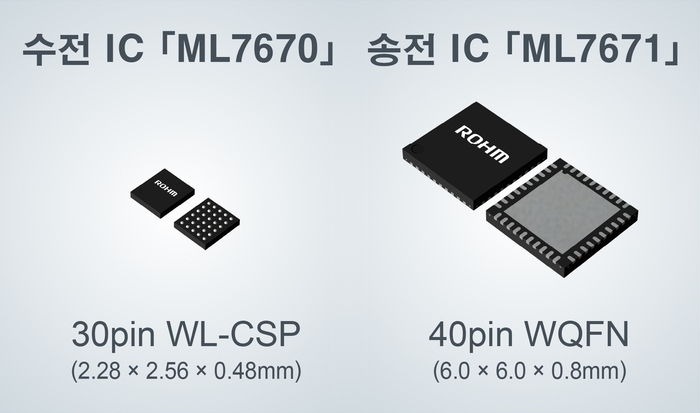로옴(ROHM) 주식회사(이하 로옴)는 스마트 링, 스마트 밴드 등 소형 웨어러블 기기와 스마트 펜 등 소형 주변 디바이스에 적용할 수 있는 근거리 무선 통신(NFC) 기반 무선 충전 IC 칩 세트 **'ML7670(수전)'과 'ML7671(송전)'**을 개발했다고 밝혔다.