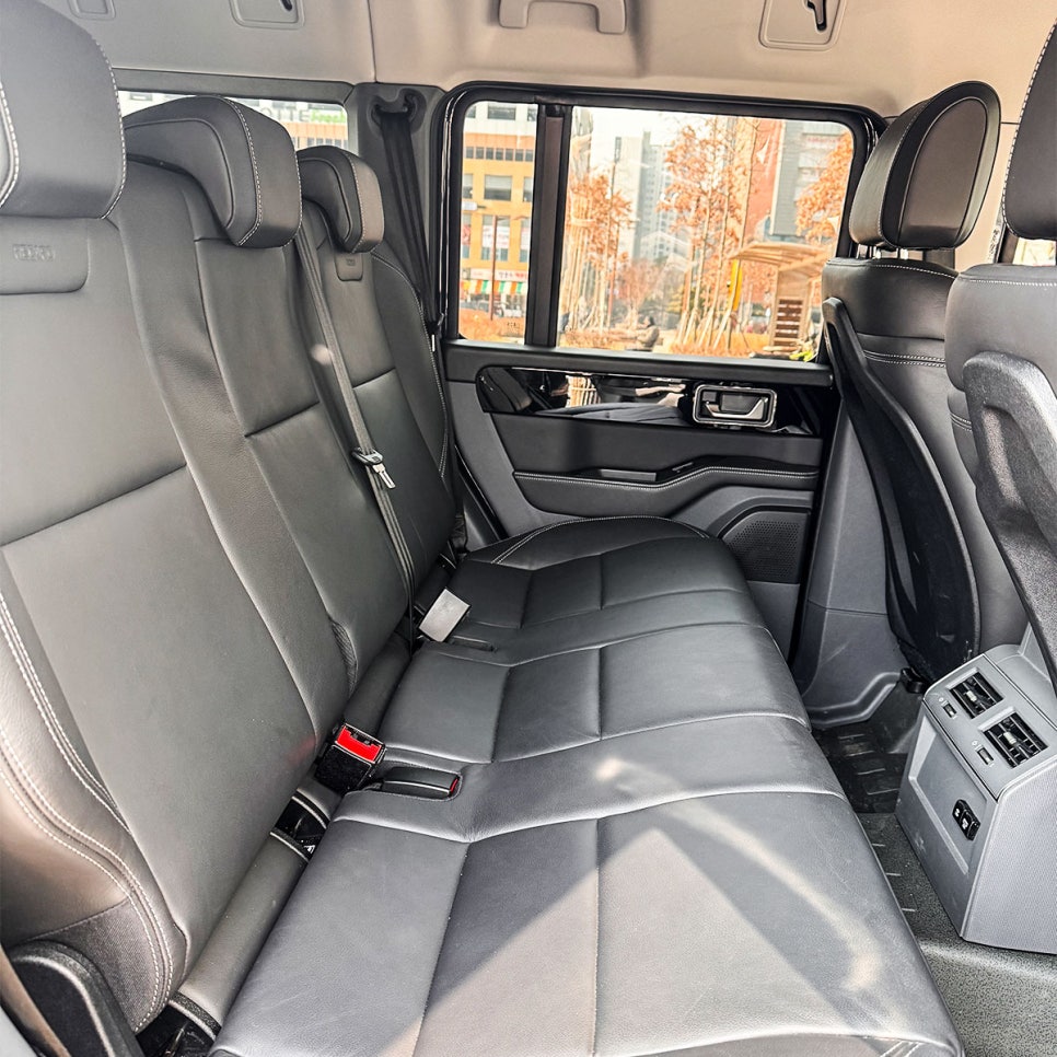 프레임 바디 구조와 솔리드 액슬 서스펜션, 그리고 사륜구동 시스템은 거친 지형에서도 안정적인 주행을 가능하게 한다.
