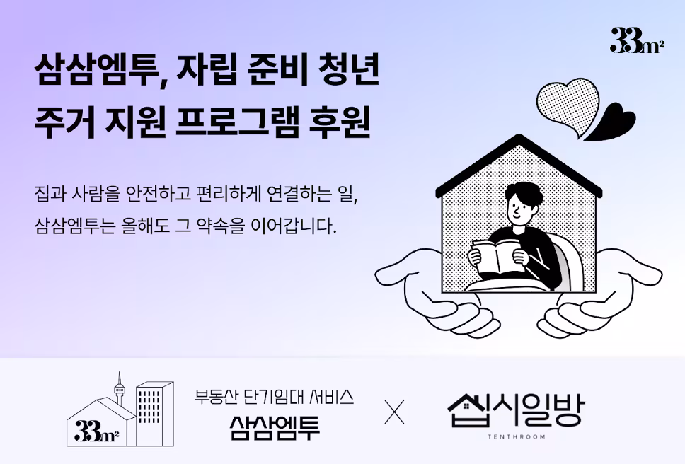 부동산 단기 임대 서비스 삼삼엠투, 자립 준비 청년에 보증금·월세 지원 활동
