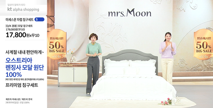 대표 상품인 '미세스문 침구세트'는 매회 방송마다 목표 대비 높은 판매 달성률을 기록하며 올해 누적 주문 5000건을 돌파했다. 호텔식 침대 역시 인기를 끌며 금성침대는 200만원대 고가에도 5회 방송에서 약 2,000건의 주문과 평균 220%의 판매 달성률을 기록했다.