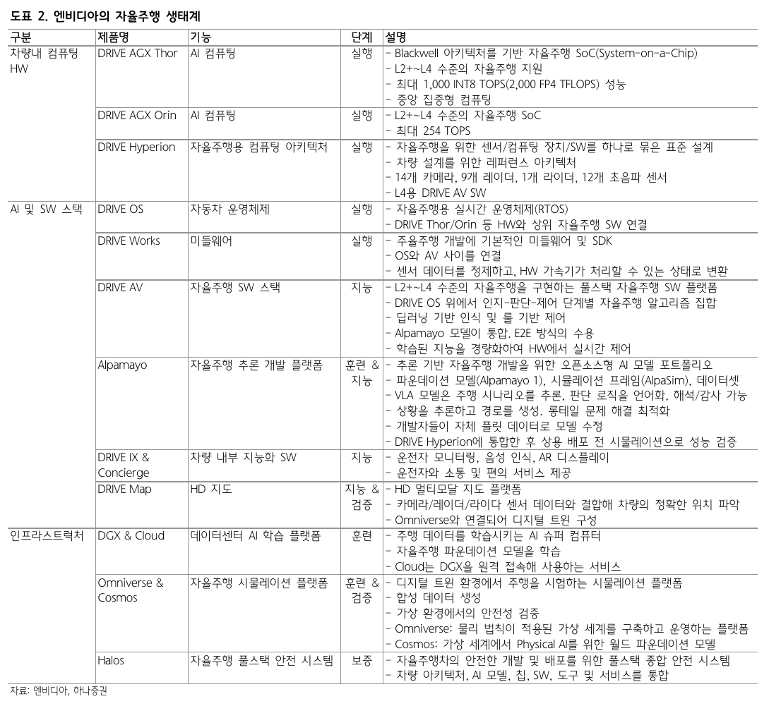 하나증권은 1일 자동차 업종에 대해 투자의견 ‘비중확대(Overweight)’를 유지하며 현대차그룹이 자율주행 로드맵과 엔비디아와의 협업을 통해 기술 경쟁력 강화에 나서고 있다고 분석했다.