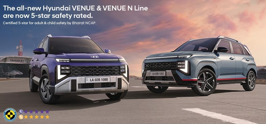 베뉴는 성인 탑승객 부문에서 경쟁 모델인 타타 넥슨, 스코다 카일락, 마힌드라 XUV 3XO, 기아 시로스보다 높은 점수를 받았으며, 어린이 부문에서는 카일락을 제외하면 가장 높은 점수를 기록했다.