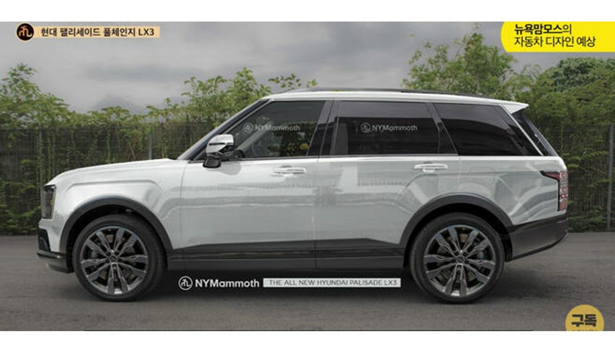 현대 자동차는 내년 출시를 목표로 대형 SUV ‘팰리세이드 풀체인지(LX3)를 개발중인 가운데, 그 디자인 예상도가 유명 자동차 예상도를 뉴욕맘모스가 공개 했다. 이번 예상도는 자동차 예상도 전문 유튜버 뉴욕맘모스가 국내외에서 포착된 테스트카를 기반으로 제작한 것으로, 박시한 형태의 정통 SUV 디자인이 특징이다. 전면부는 큼직한 사각형태의 라디에이터 그릴과 각진 디자인의 헤드램프 박스, 슬림한 두 개의 프로젝션 LED 라이트로 구성되어 있으며, ‘심리스 호라이즌’ 주간주행등(DRL) 등이 적용되었다.