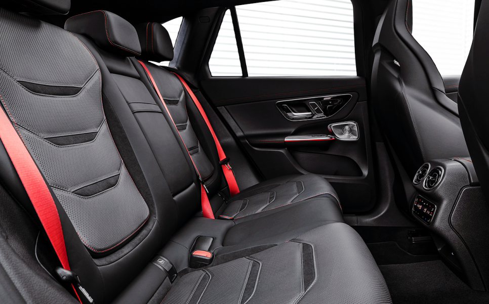 휠은 20인치 AMG 10 스포크 경량 알로이 휠이 들어가면서 스포티한 매력을 강조했죠, 또한 조향각이 2.5도인 리어 액슬 스티어링을 활용하면 역동적인 주행 성능 및 민첩성, 유연성을 향상시킬 수 있죠, 60km/h 미만의 속도에서 주행 시 뒷바퀴는 앞바퀴와 반대 방향으로 움직이면서 코너링 시 더 안정적인 승차감을 더해주죠